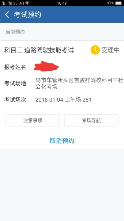 科目三真的很难约,第一次约成功后取消了就很难约,望大家慎重取消。
