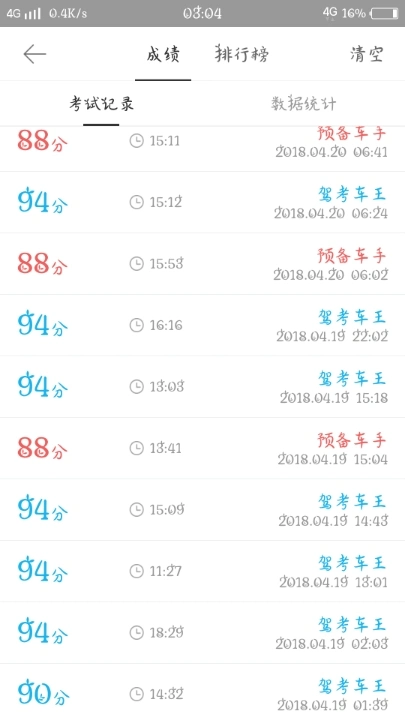 科目一94科目二80科目三100科目四没考