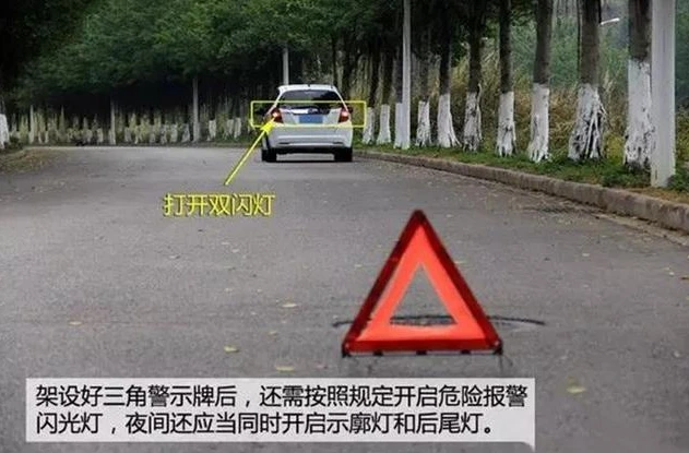 车停到应急车道上去,开双闪,然后走应急车道至150米外放置三角警示架。只要车还能动,就不能停在行车道上。