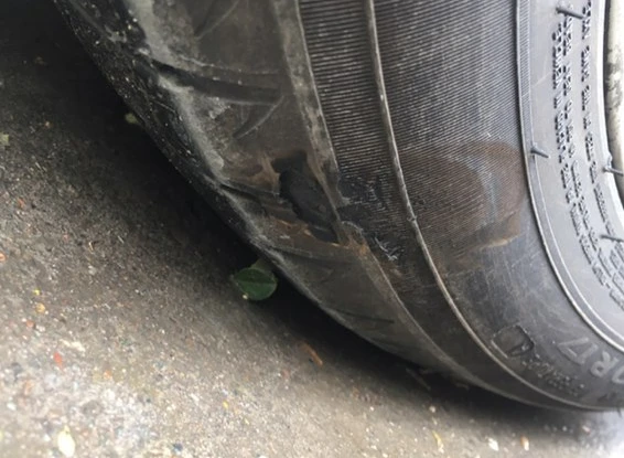 5月刚换米其林前胎一对,跑了还没有3000公里,今早让地锁的膨胀螺栓卡掉了一块,大概有10mm*20mm大小,因为十月要自驾游一圈,大神们给看看用不用换啊,跪谢