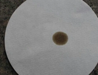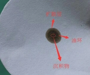 去网上买机油纸,9-11CM直径的慢速定性试纸就行了,100张一盒价格大概在9-11元之间。滴一滴机油上去,放一个晚上,第二天看情况。如果扩散的机油油环、沉淀环、扩散环之间的边缘越硬,则机油性能衰减就越厉害。这时候就需要更换机油了。