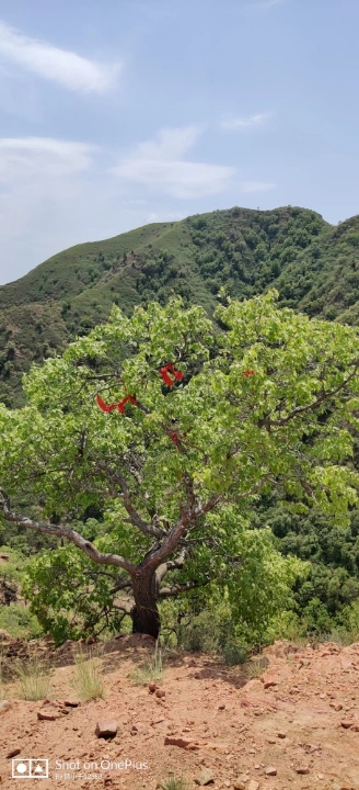 笔直的🌲上缠着红布,估计也是寄托人们的美好心愿!