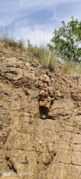 风化后的石头,感觉一捏就碎了了,中间🈶亮闪闪的碎晶体,不知道🈶什么矿石!