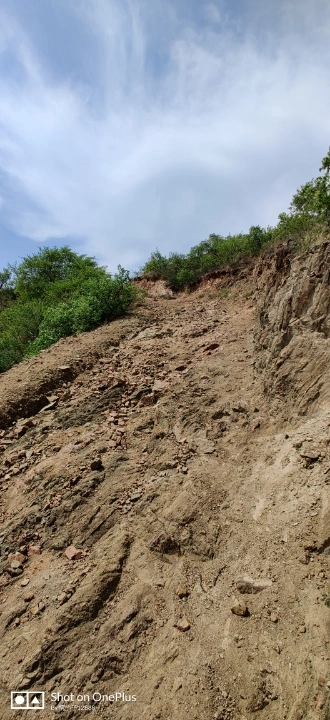 没有台阶的路,而且还是这种稀松的砂石,容易打滑!