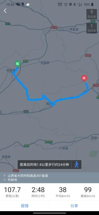 导航可以直接查询阳原竹林寺,不然全国同名的太多了!要说明一下,进山沟里后是没有信号📶的!这是途中休息时为爱车拍的美照!😁