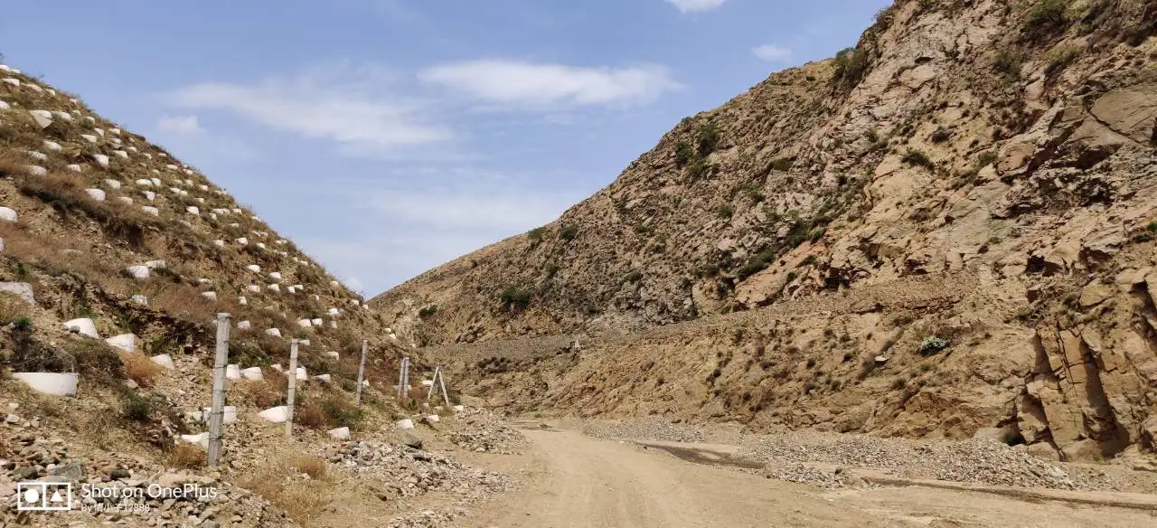 这是一条河沟,到这里时看导航显示是水峪口村,看地图应该左转🈶路,但看看路好像不太明白,正好🈶修坝的人,于是上前询问,还好告诉我沿着河湾里的路走就🉑以!为了准确,我问了两个人😜